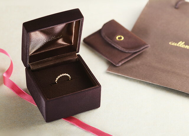 ボックスの外箱にはリボンを結び、大切な人に贈るジュエリーを大切にラッピング致します。