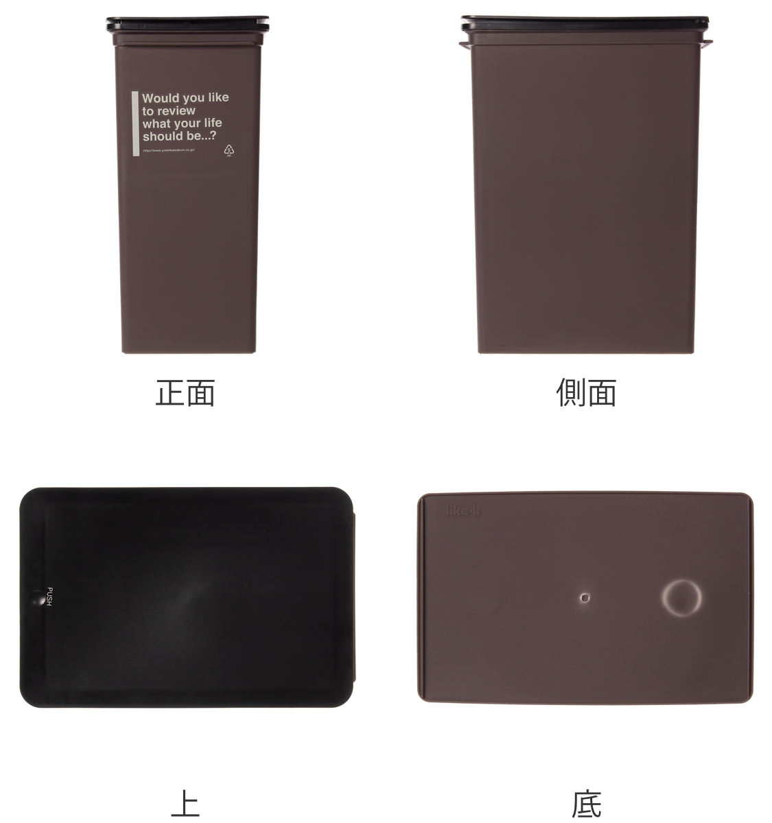 商品詳細片手でワンプッシュオープンフタに書かれた「PUSH」を押すと簡単オープン。