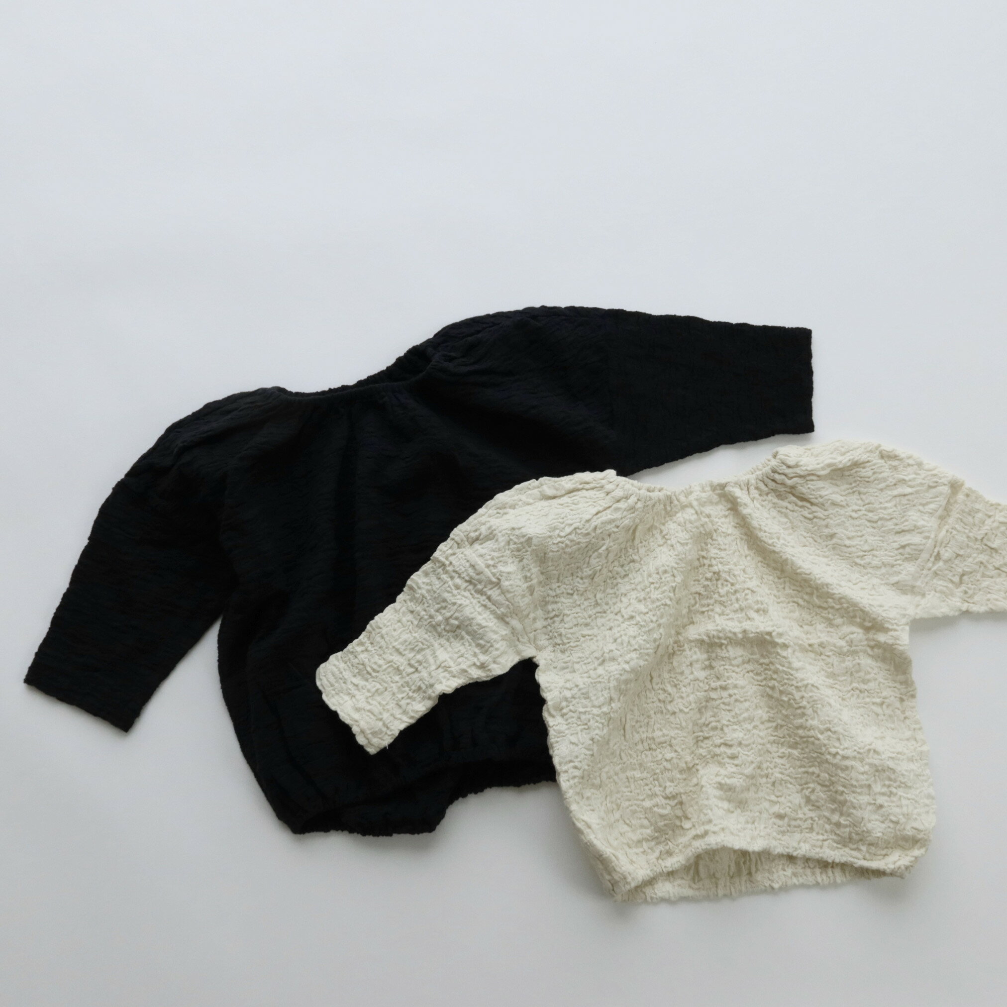 しゅくしゅした形状の シンプルなブラウス^^ ボタンがなく、すぽっと着れます。