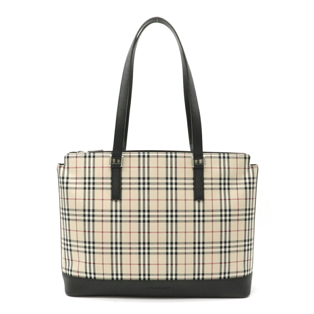 【バッグ】BURBERRY バーバリー ノバチェック トートバッグ ショルダートート 肩掛け キャンバス レザー ブラック 黒 ベージュ レッド 赤 【中古】