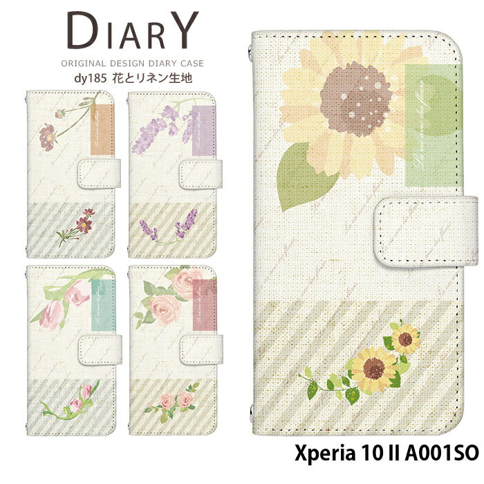 Xperia 10 II A001SO ケース 手帳型 エクスペリア10マーク2 テンマーク2 カバー スマホケース デザイン ベルトなし 花とリネン生地 ナチュラル シンプル 北欧 花柄 かわいい ストラップホルダー