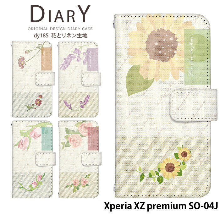 Xperia XZ premium SO-04J ケース 手帳型 エクスペリア カバー スマホケース デザイン ベルトなし 花とリネン生地 ナチュラル シンプル 北欧 花柄 かわいい ストラップホルダー