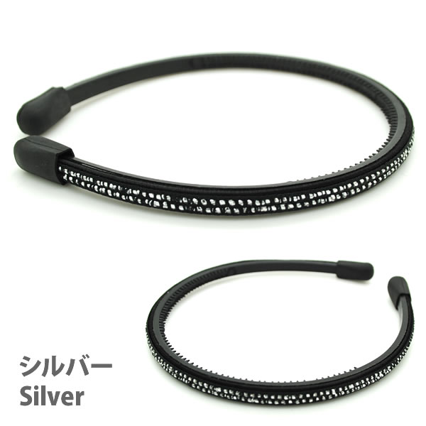 日本製 痛くならないカチューシャ 高級感◎ キラキラカチューシャ 控えめながら 美しい光沢感 ブラックの土台に、キラキラが2列に並んだデザインです。