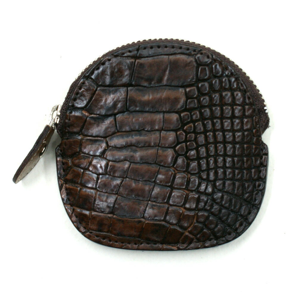 コインケース メンズ レディース ファスナー小銭入れ クロコダイル革 鰐革 ワニ革 本革 丸型 薄型 コンパクト 小銭入れ mini 小さい 日本製 アンティーク チョコ