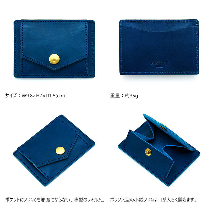 【ネコポス対応】『パピエ』(全5色)ブッテーロ/【コインケース カードケース 一体型 フラット 薄い 革 レザー ミニ 小さい シンプル】【AGILITY affa(アジリティアッファ)】(1631)[M便 3/3]