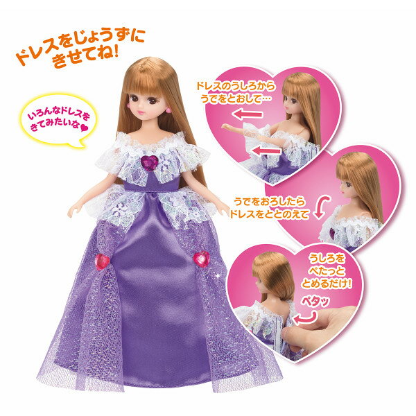 ワンピースの他、着せ替えて遊べるロングドレス、ミニドレスとクツがついています。