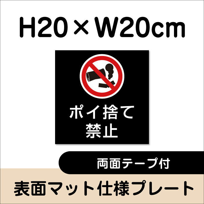 【両面テープ付き】ポイ捨て禁止 プレート 看板【マットブラック】H20×W20cm シルバーアルミ複合板 /屋外対応 お洒落 黒 看板/店内標識や室内プレートにも! bla20-13-r