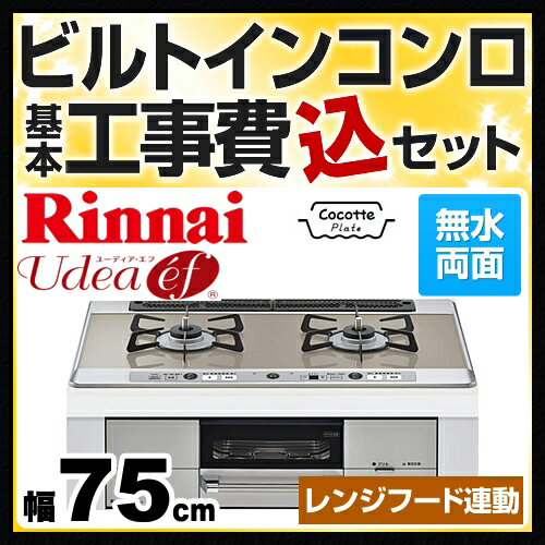 【楽天リフォーム認定商品】【工事費込セット(商品+基本工事)】[RHS721W26S13RVR] 【都市ガス 大バーナー右】 リンナイ ビルトインコンロ Udea ef ユーディアエフ 幅75cm ガラストップ ココットプレート付属 ガラストップ:ミストシルバー