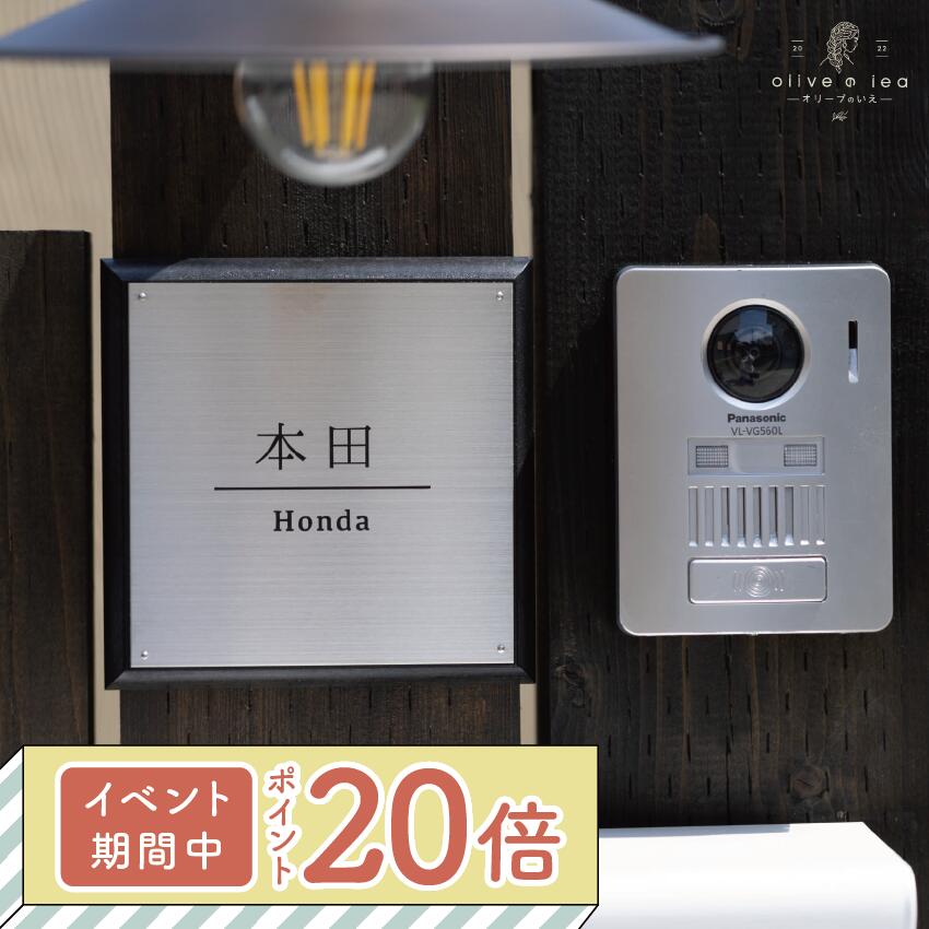 ステンレス×天然木 表札 【Stainless&Blackwood 005】150mm × 150mm 送料無料 戸建 おしゃれ シルバー アンティーク 筆記体 漢字 英字 ローマ字 取り付け 簡単 貼り付け 二世帯 門柱ネーム プレート オーダーメイド 店舗 新築