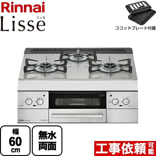 [RHS31W32L24RSTW-LPG] Lisse リッセ リンナイ ビルトインコンロ 幅60cm DC3V乾電池タイプ ガラストップ:クラウドシルバー ココットプレート付属 【送料無料】【プロパンガス】