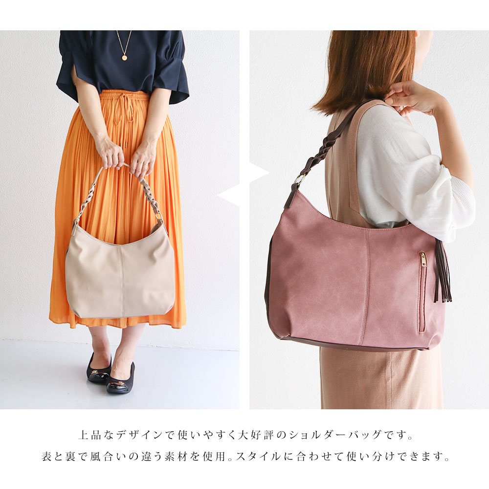 ショルダーバッグ レディース 大人 大きめ タッセル付き ファスナーポケット 旅行 通学 通勤 女性用 シンプル 無地 軽い 黒 ブラック ベージュ 青 ブルー 赤 ワインレッド 2021200 2021221 2021230 2021252 送料無料