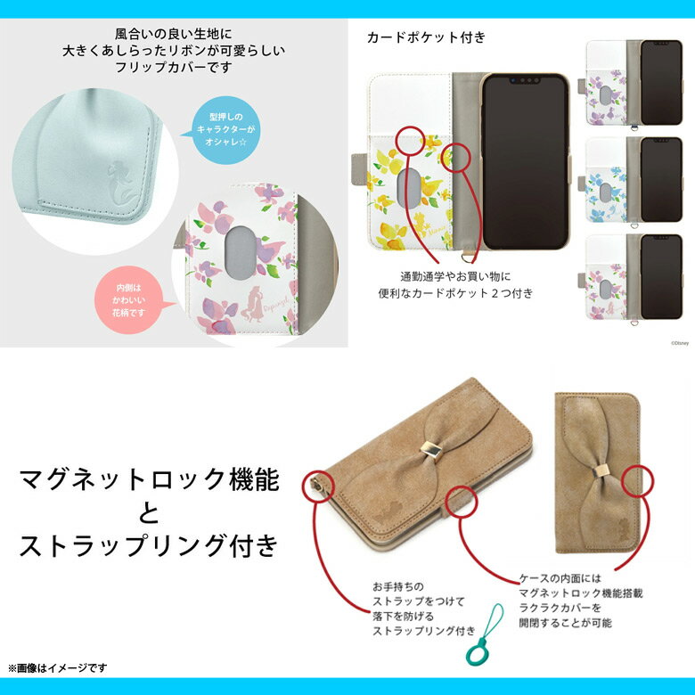 iPhone13 mini ケース キャラクター 手帳型 ディズニー 不思議の国のアリス PG-DFP21J06ALC【2100】Disney フリップカバー リボン カード収納 ストラップ用リング付き マグネット開閉PGA