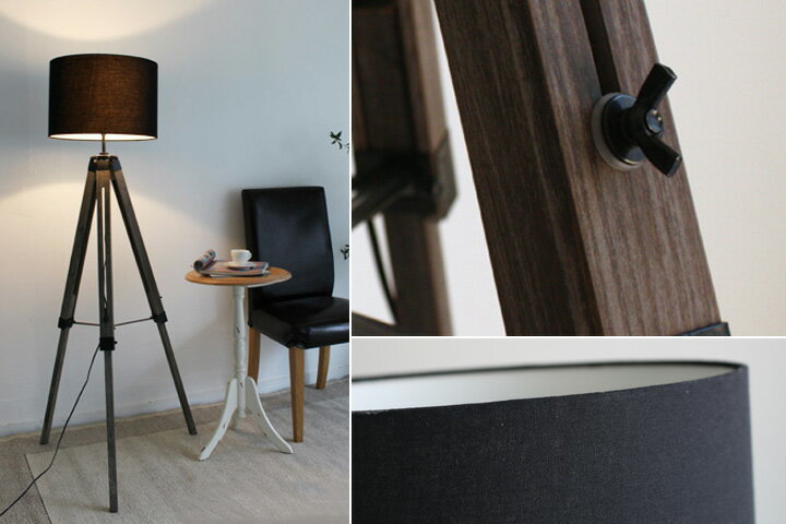 キャンバスなどを載せるイーゼルをモチーフにした三脚がおしゃれなフロアライトです。