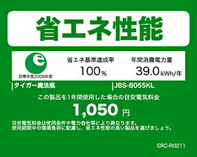 商品説明 タイガー マイコン炊飯器 おすすめポイント 1)熱伝導と蓄熱でふっくら炊きあげる遠赤黒特厚釜3.0mm 2)じっくりごはんの甘みを引き出す極うまコース搭載 3)本格調理をほったらかしで出来る低温調理コース搭載 さらにお手入れパーツはたったの2点で毎日のお手入れが楽に!(内ふた&内なべ) 仕様 機種名 JBS-B055KL 色柄 (KL)メタルブラック 本体サイズ(約)(幅×奥行き×高さ) 24.7×27.8×19.2cm 本体質量(約) 2.7kg 容量 0.09〜0.54L(0.5〜3合) 最大消費電力 350W 年間消費電力量(※1) 39kWh/年 1回当りの炊飯時消費電力量(※1) 90.1Wh(※2) 1時間当りの保温時消費電力量(※1) 13.00Wh(※2) 最大保温時間 12時間 省エネ基準達成率 100% 電源 100V 50/60Hz 加熱方式 釜包みヒーター 内なべ 遠赤黒特厚釜(なべ厚3.0mm)、内なべ洗米OK、内なべ1年保証 メニュー エコ炊き・白米・極うま・無洗米・早炊き・冷凍ご飯・炊込み(おこわ共通)・玄米・クッキング高温・クッキング低温 付属品 しゃもじ、計量カップ、電源コード ※1 省エネ法・特定機器「電気ジャー炊飯器」の測定方法による数値です。