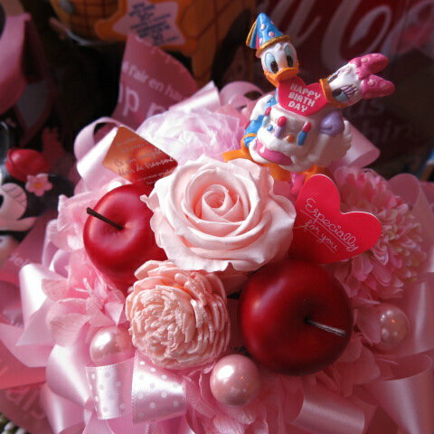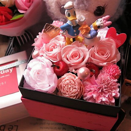 誕生日プレゼント ドナルド デージー入り 花 ディズニー バースデーA プリザーブドフラワー入り ケース付き ◆誕生日プレゼント・記念日の贈り物におすすめのフラワーギフト