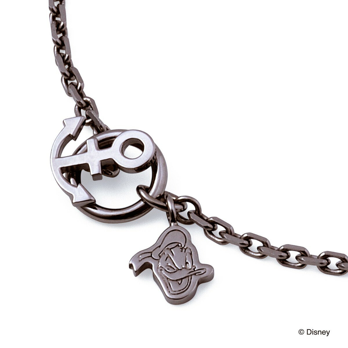 【ディズニーコレクション】 シンプルなチェーンに、ドナルドのフェイスチャームといかりモチーフを組み合わせたデザイン。