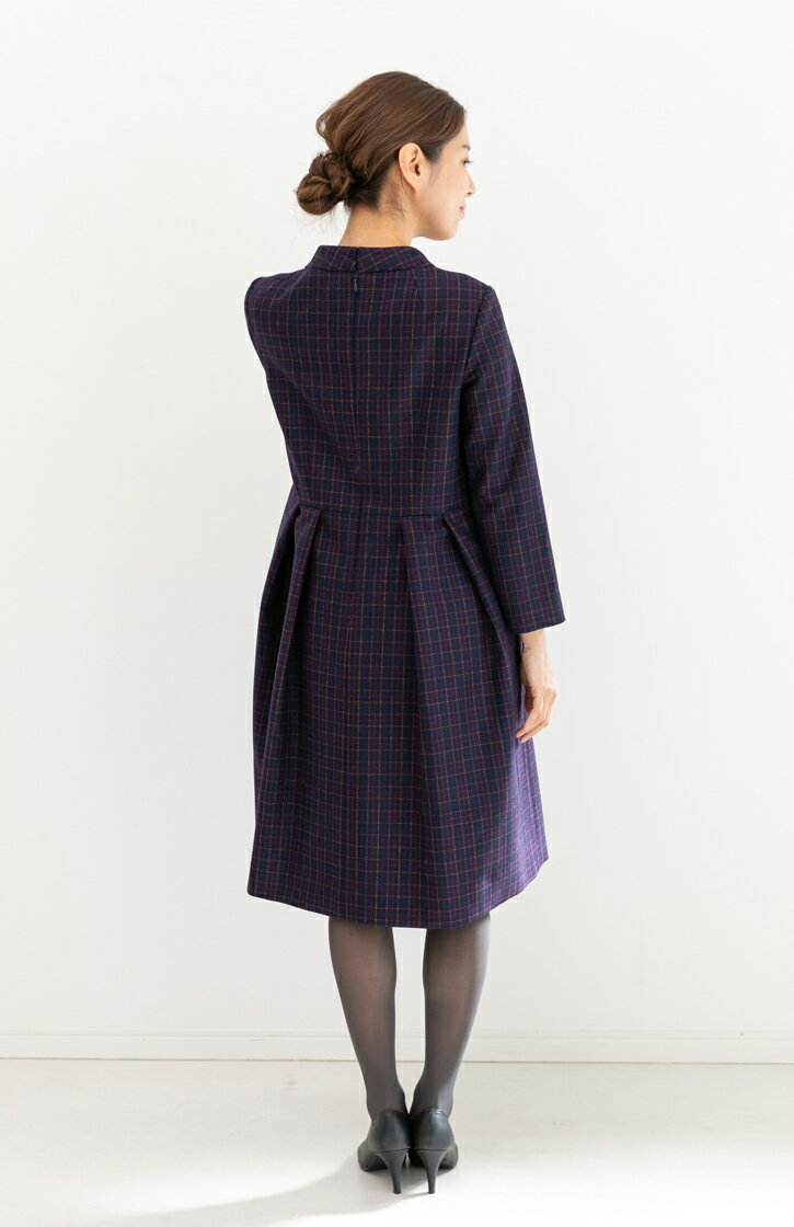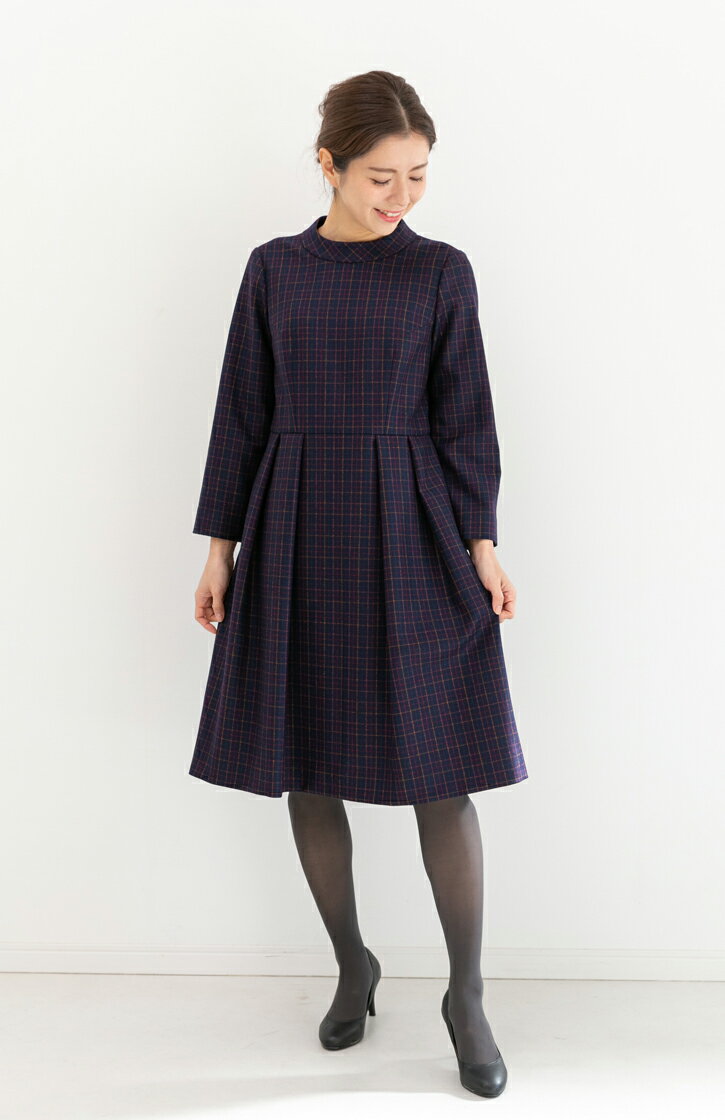 ブティックひでき スタンドカラー ウエスト切り替え ワンピース 秋冬 7号〜15号 オーダーメイド HR-9478-1