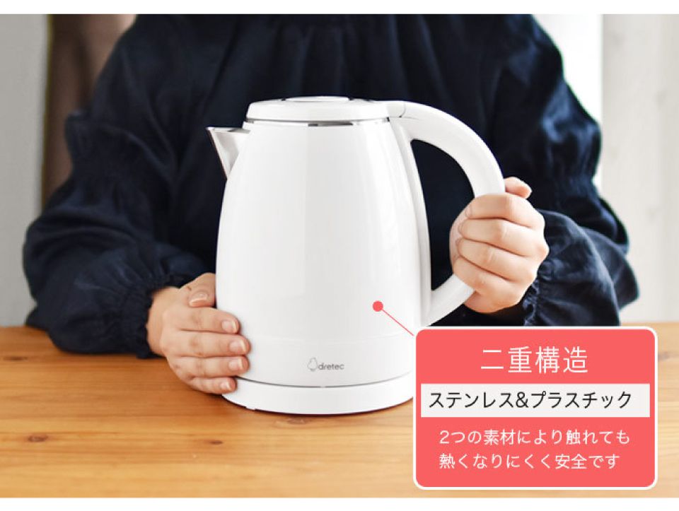 ・プラスチックとステンレス素材の2層により外気の影響を受けにくく、一般的なケトルよりも保温効果が高いです♪