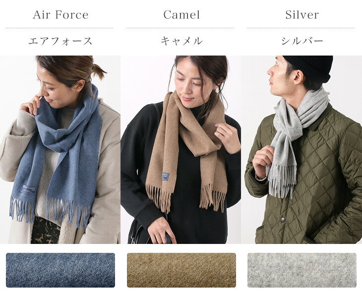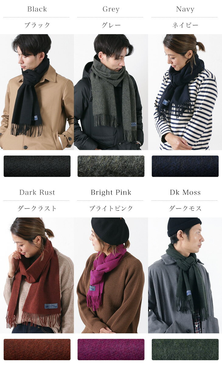 サイズ(cm)&スペック ONE SIZE サイズ 全長 約176×幅25(フリンジを含まない長さ)フリンジ:7cm×2 カラー ブラック、グレー、ネイビー、ダークラスト、ブライトピンク、ダークモス、エアフォース、キャメル、シルバー 生産国 MADE IN ENGLAND 素材 ラムズウール100% 重量 約150g ご注意 ※在庫に新タグと旧タグが混在しているため、発送時にどちらかをお選びいただくことができません。