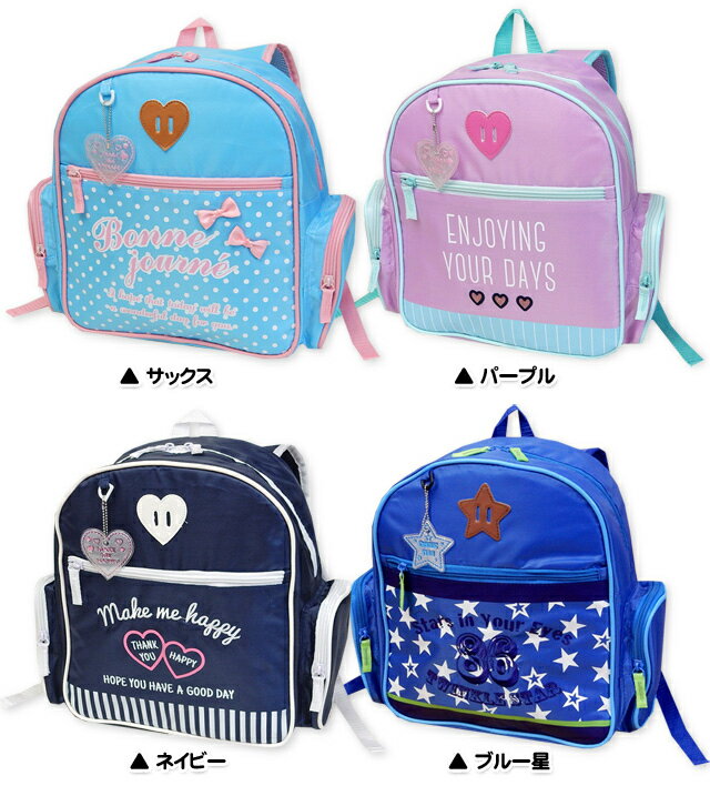特長・リュックサック・(サックス)リボン装飾・(サックスを除く)刺繍入り・ドット/ストライプ/ハート /ロゴ/星/迷彩/ボーダー・リフレクター/反射材付き・ワッペン ・ダブルジップ・キーホルダー ・背面メッシュ・Dカン ・ベルト長さ調節可能[収納数]・メイン収納2P(内ポケット1P)・サブポケット3P・子供用 ・男の子 ・女の子素材・(表地)ポリエステル100%・(裏地)ポリエステル100%・飾り部分に合成皮革素材を使用サイズ縦30cm/横26cm/マチ12.5cm/ベルト(最大)55cm個体によっての若干の誤差はご了承ください。