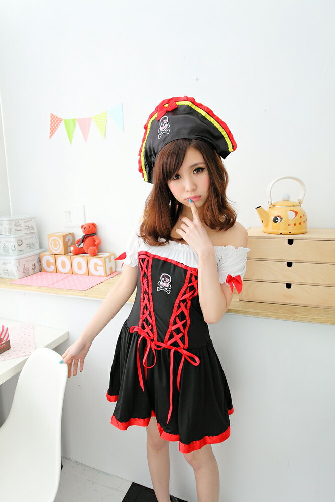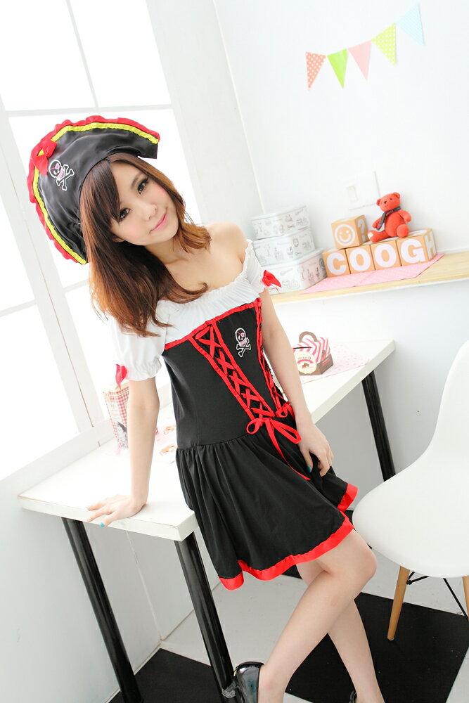 ハロウィン 衣装 仮装 送料無料 黒に赤リボン アクセント 海賊 パイレーツ オブ カリビアン パニエ入り コスプレ コスチューム 【こすぷれ】【送料込み】【ハロウィーン/ハロウイーン/HALLOWEEN】