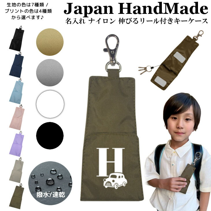 名入れ リール付キーケース ( ナイロン / イニシャル / 車 )| 子供 キッズ 子供用 大人 鍵入れ リール付き 通学 入学祝い 小学校 男の子 女の子 レディース メンズ シンプル おしゃれ 日本製 アウトドア