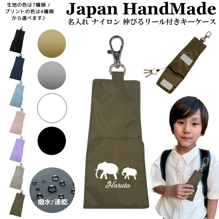 名入れ リール付キーケース ( ナイロン / ゾウ の 親子 ファミリー 象 )| 子供 キッズ 子供用 大人 鍵入れ リール付き 通学 入学祝い 小学校 男の子 女の子 レディース メンズ シンプル おしゃれ 日本製 アウトドア