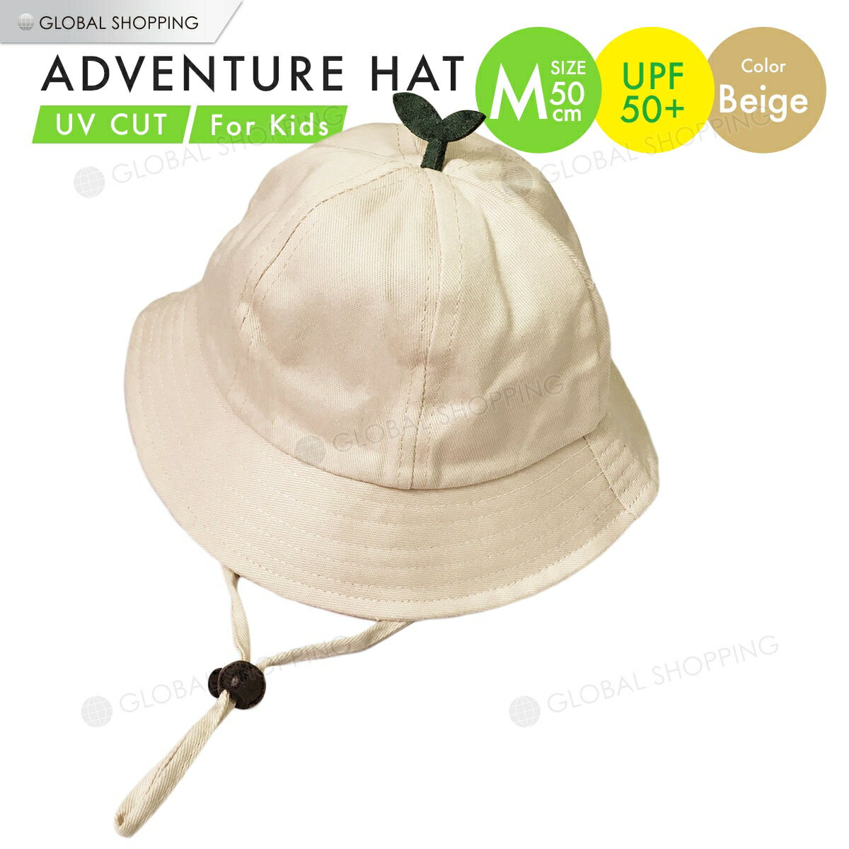 ハット 赤ちゃん用 帽子 夏 子供 子ども 赤ちゃん ベビー ジュニア キッズ 男の子 女の子 あごひも付き 散歩 外遊び 公園 熱中症対策 UVカット 紫外線カット Mサイズ 50cm ベージュ
