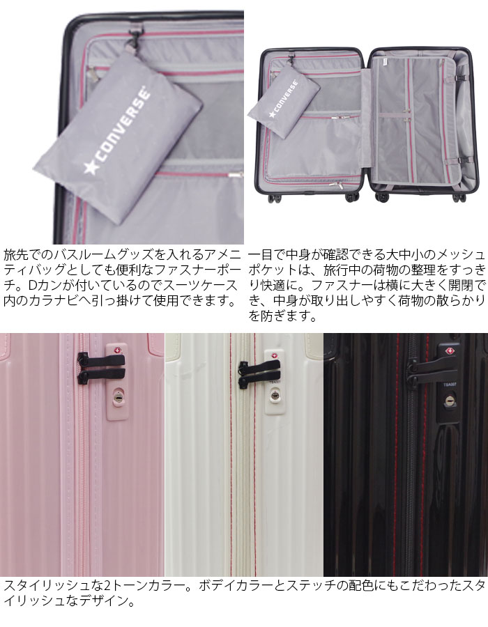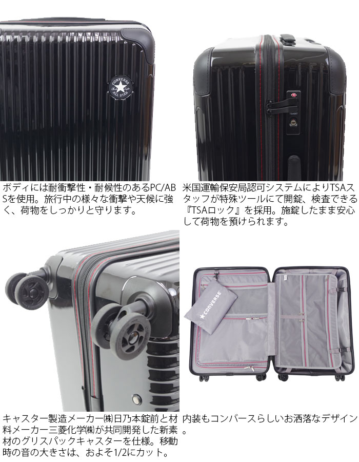 キャリーケース Mサイズ スーツケース ジッパーキャリー コンバース CONVERSE バッグ メンズ レディース ジッパータイプ 全3色 4輪 62L 3-4泊 16-03 トラベル 旅行 修学旅行 送料無料