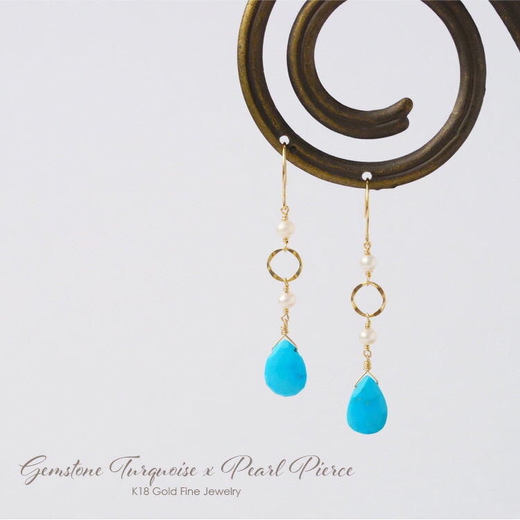 素材 [天然石]ターコイズ・淡水パール [K18ゴールド] ピアスポスト・デザイン丸カン ※天然石を留める金具のみK14GFとなります ※ニッケルフリー(ニッケルは含まれておりません) 天然石について 使用している天然石につきましては、下記のような個体差があります。