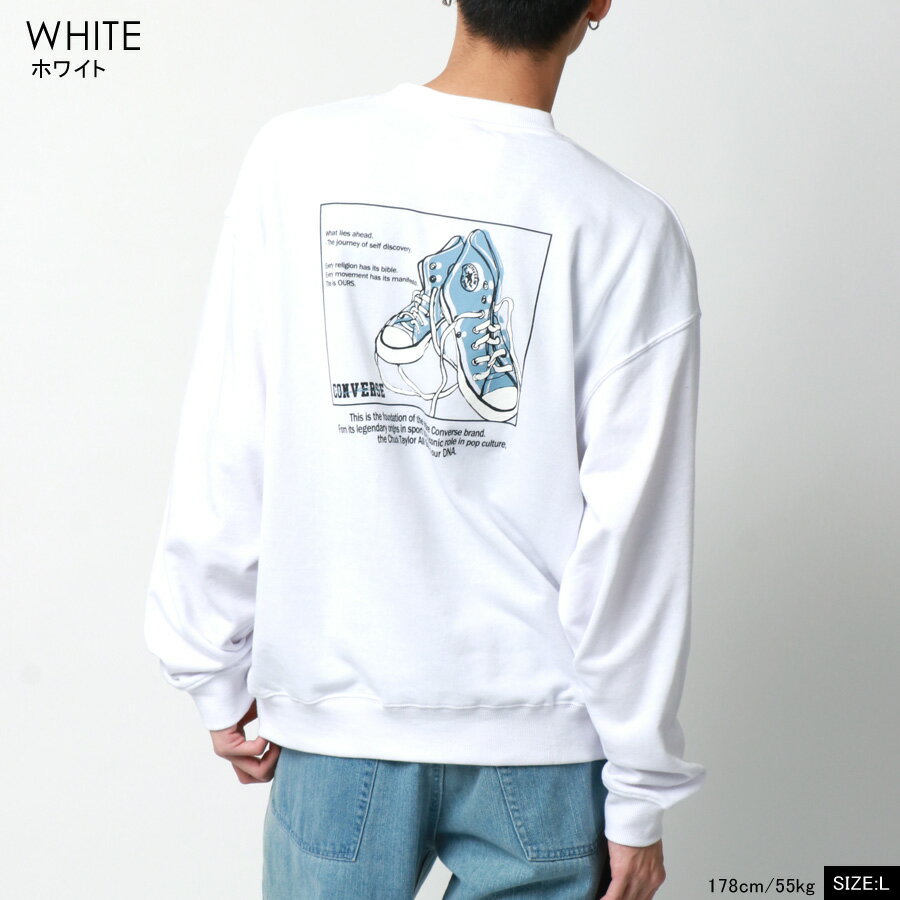 トレーナー メンズ ブランド CONVERSE コンバース かわいい スウェット 裏毛 バック プリント マルカワ スエット アメカジ カジュアル おしゃれ オシャレ 大人 ペアルック 韓国 ファッション メンズファッション 白 黒 M L LL XL 30代 40代 50代 春 秋 冬