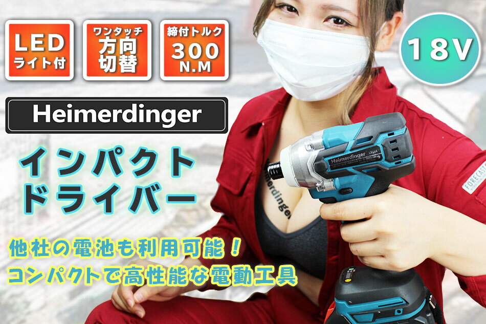 プラスビット長・短1本ずつプレゼント中!【スペック】 ブランド名:heimerdinger 銘柄:heimerdinger ドリルタイプ:インパクトドリル 使用法:リフォーム・リノベーション・DIY 定格入力電力:230W 無負荷速度:3300rpm 定格電圧:18V モデル番号:LB164 型番:HD-D1B2C1Cs 重量:1.1kg(本体のみ) 電源:バッテリー 定格トルク:300N.M 周波数:50 / 60Hz チャック方式:ビットスリーブ式(6角軸6.35mm(1/4”)) 【商品セット内容】本体、4.0Ahバッテリーx2個、チャージャー、ケース1年間保証つき(※保証書は同梱しておりません。