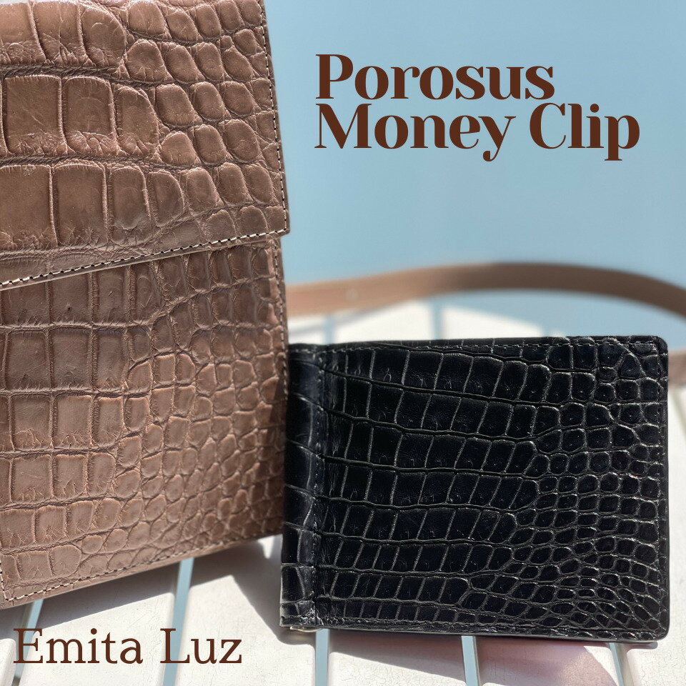クロコダイル マネークリップ ポロサス ワニ革財布 メンズ バイカラー ワニ革 札入れ 小銭入れなし 薄い お札入れ メンズ財布 クロコダイル財布 二つ折り 青 ブルー 折り財布 薄い財布 誕生日 プレゼント ギフト 折り財布 薄型財布