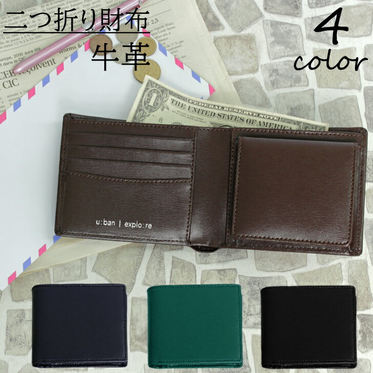 二つ折り財布 牛革 お札入れ bok型 小銭入れ ボックス型 フリースペース 折りたたみ財布 薄い メンズ レディース 化粧箱 プレゼント 誕生日 父の日 母の日 敬老の日 合格祝い 就職 退職 ブラック グリーン チョコブラウン ネイビー