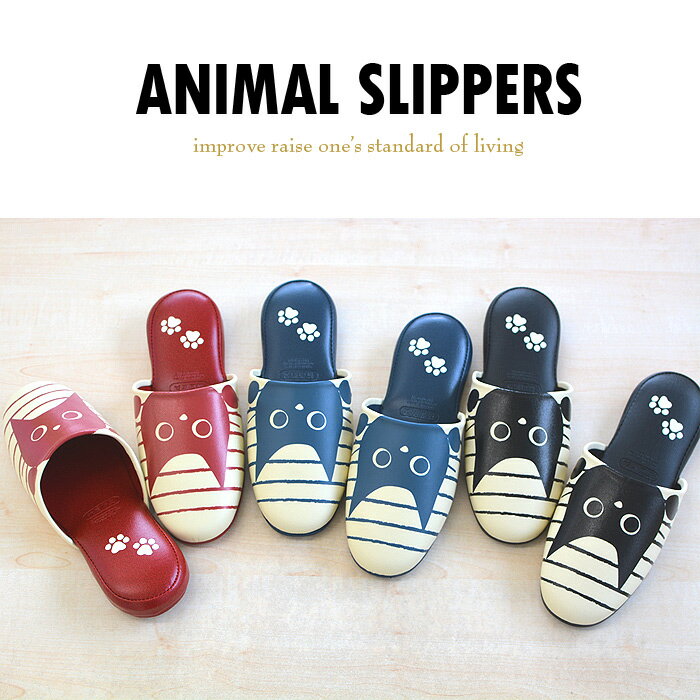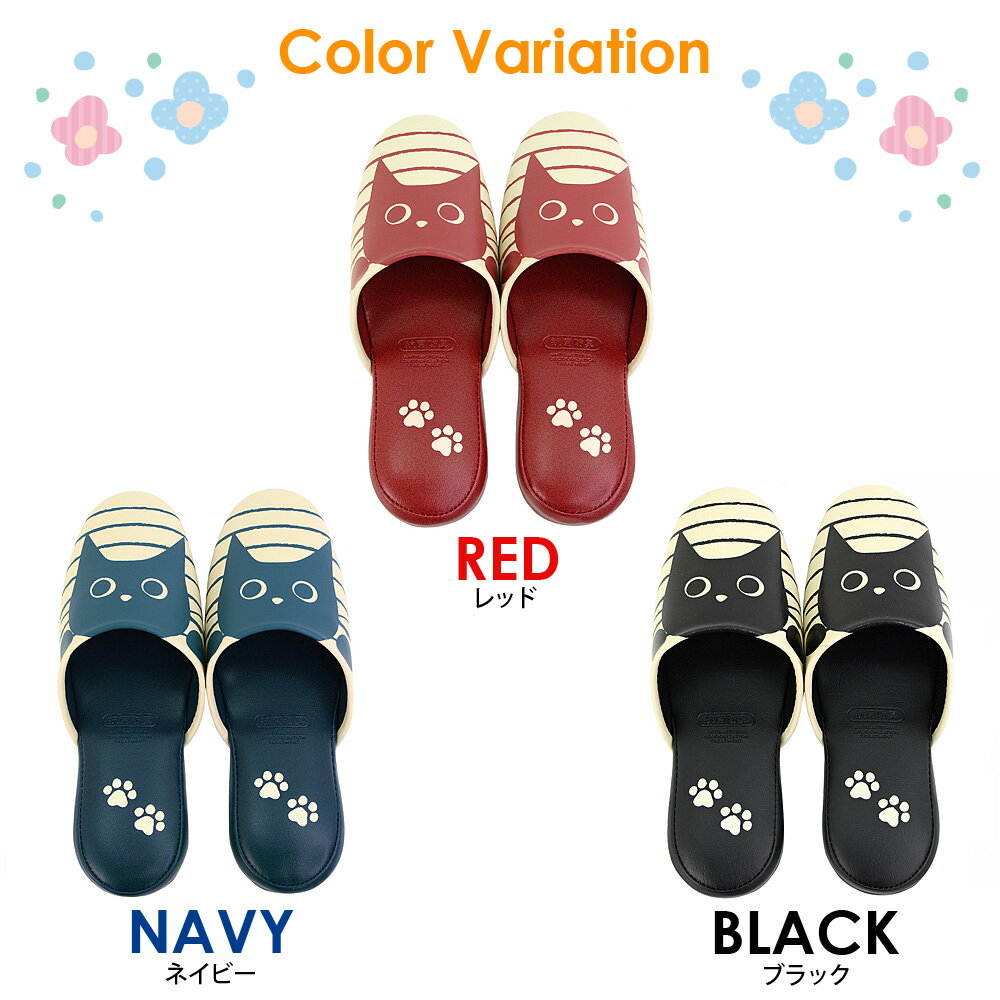 ピョコンと顔を出すかわいいネコがプリントされた抗菌スリッパ。