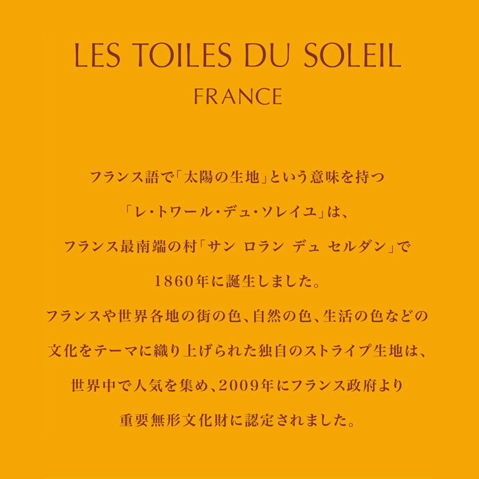 ・「レ・トワール・デュ・ソレイユ」とは、フランス語で「太陽の生地」という意味。