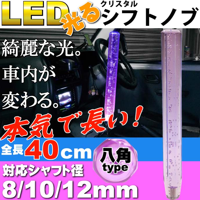 光るクリスタルシフトノブ八角40cm紫色 シャフト径8/10/12mm対応 綺麗に光るシフトノブ クリスタルがカッコイイシフトノブ as1512
