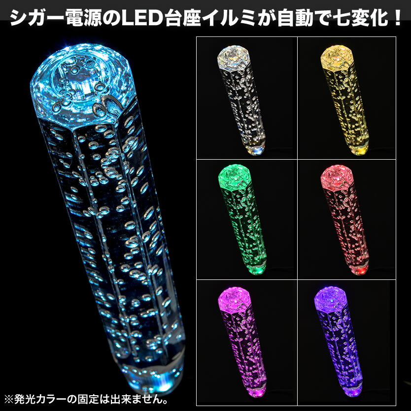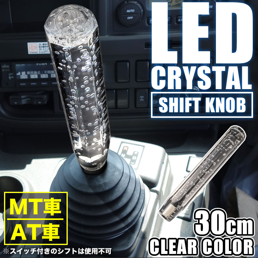 トラック ダンプ 大型車 LED クリスタル 泡 八角 シフトノブ ロング 30cm クリア M8/M10/M12 レインボー発光 12V/24V兼用