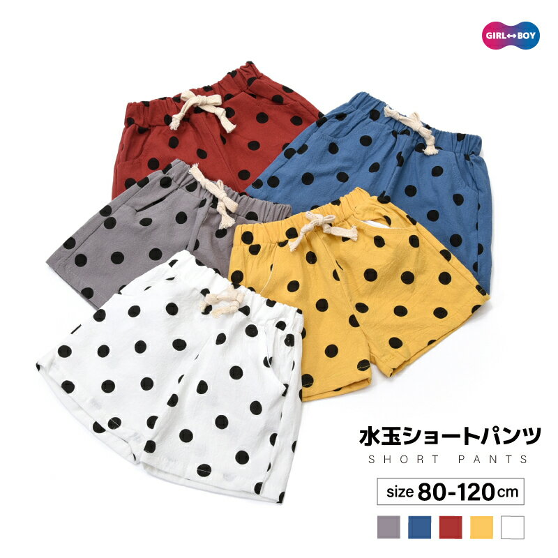 送料無料 ショートパンツ キッズ ベビー 男の子 女の子 こども用 短パン 半ズボン ウエストゴム 水玉 ドット ポケット おしゃれ かわいい 可愛い カジュアル 通園 通学 お出掛け 外出 80cm 90cm 100cm 110cm 120cm 子ど