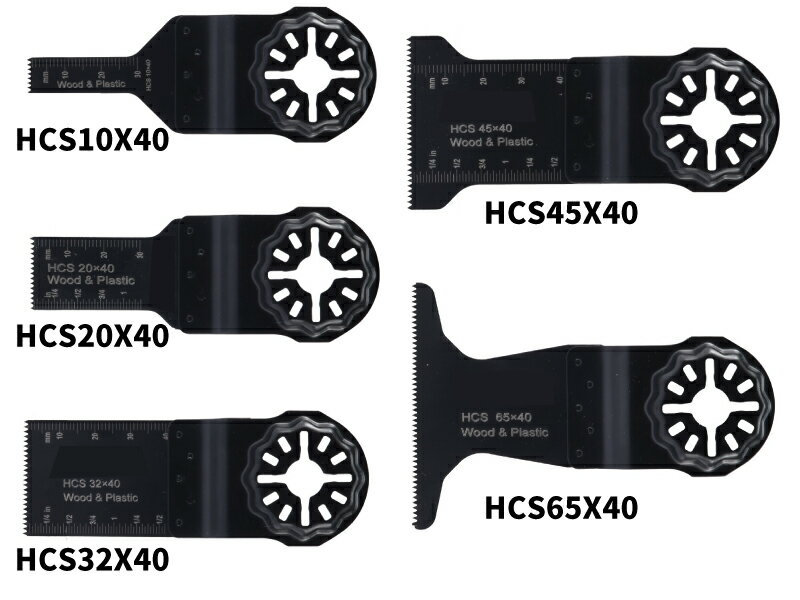 【型式】HCS10X40、HCS20X40、HCS32X40、HCS45X40、HCS65X40 HCS88、Precision32x40、Precision45x40、BIM32x40、BIM45x40 型式 説明 HCS10X40 刃幅10mm、刃長40mm 木材、石膏ボード、プラスチックの切断用です。