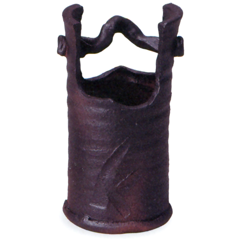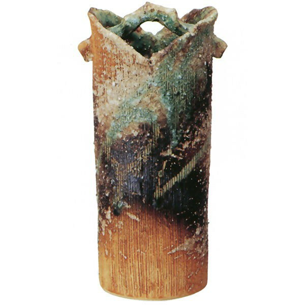 日本製 花器 コゲ長手桶花入 5.5号 全高15.5cm×幅9cm(信楽焼 陶器製 焼き物 国産品 フラワーベース 花瓶)