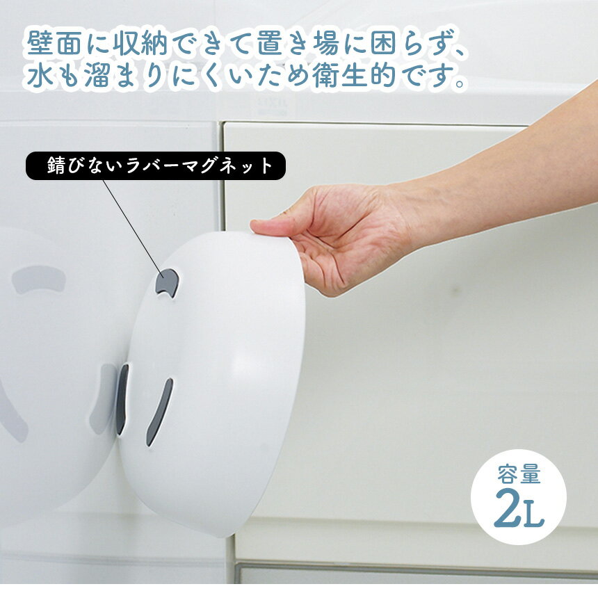 ・収納時、おけの中の水が切れて衛生的・錆びないラバーマグネットを採用浴室の壁面に磁石で簡単収納・収納時、おけの中の水が切れて衛生的・錆びないラバーマグネットを採用マグネット湯おけW621カラーホワイトサイズ本体:(約)直径220×76mm重量(約)264g材質本体/ABS樹脂マグネット/ラバーマグネット注意事項●壁面や床面でのご使用の際、引きずらないで下さい。