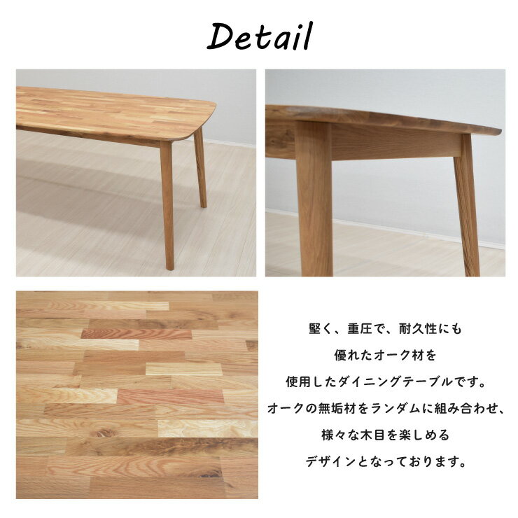 仕 様 サイズ材質 【輸入品】 ダイニングテーブル【組立品】 幅1350mm×奥行800mm×高さ720mm 材質:オーク無垢 塗装:ウレタン塗装 ※木部の節、木目はお届け商品によって異なります。