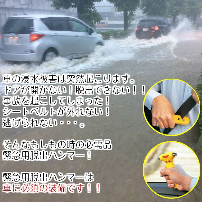 商品説明サイズ箱サイズ:14×9.6×3cm 商品サイズ:13.3×8.8×2.5cm 材質ABS樹脂・ステンレス鋼セット内容シートベルトカッター付ハンマー ここ数年、夏になるとゲリラ豪雨が頻発しています。