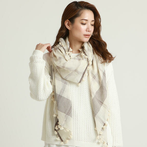 ストール ファッション小物 レディースファッション サラサラ綿 麻チェック 春夏 ザックリ さらさら生地 綿 春夏のオシャレ 首元UVケア