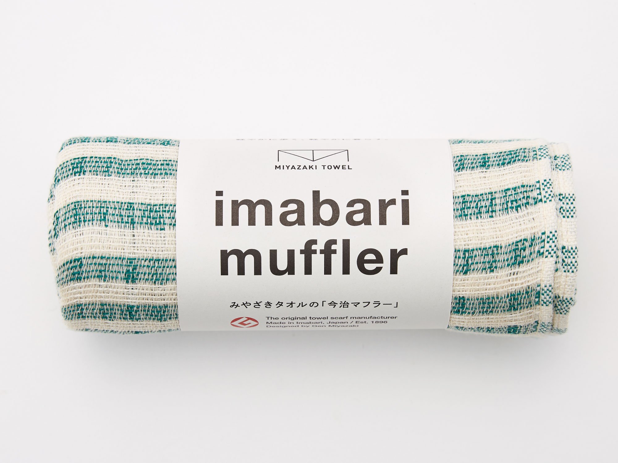 imabari mufflershima 今治マフラー シマ |4|グリーン|ロング 180cm x 34cm / 82g / cotton 100% 横糸10mmのボーダーの上に縦糸を重ねた、なんとも柔らかな縞状のマフラー ■いつもの散歩道から、旅先まで。