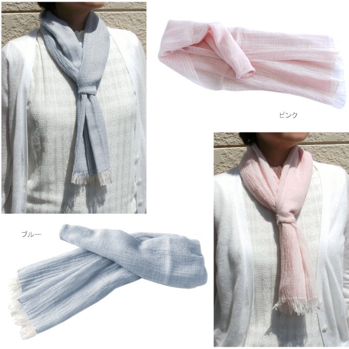 また夏のじりじりした、日差し対策にも! これは、とっても便利です!! 爽やかカラーのストールは、身につけるだけで自然と表情を明るく演出します。
