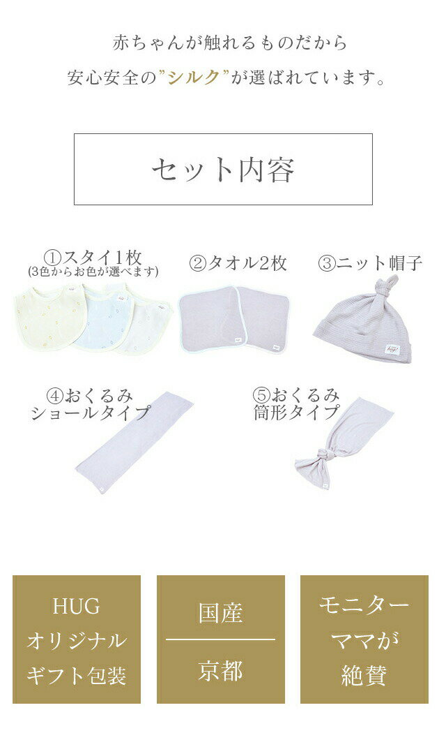 おくるみ 帽子 タオル スタイ 5点セット BABY SILK HUG ベビー シルク ハグ 世界一のシルクベビーギフト ニット 赤ちゃん 新生児 日本製 出産準備 ギフト プレゼント 出産祝い hug0010-bo 【新品】【着物ひととき】