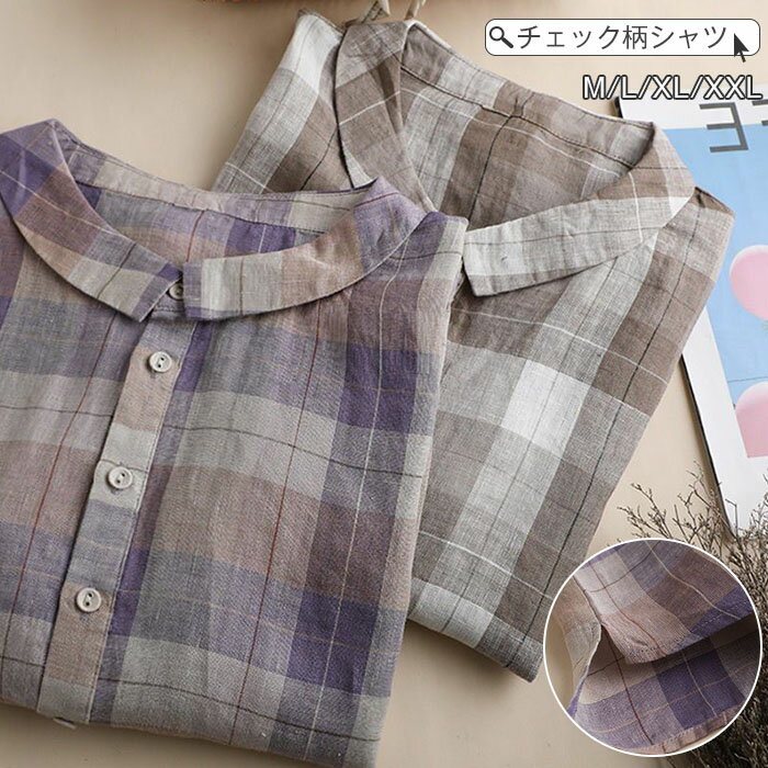 チュニック シャツ チェックシャツ 綿麻風 ブラウス チェック柄 レディース ブラウス トップス 薄手 アウター 半袖 大きいサイズ シャツ フォーマル オフィス ゆったり カジュアル 体型カバー きれいめ 上品 シンプル おしゃれ 30代 40代 50代 送料無料