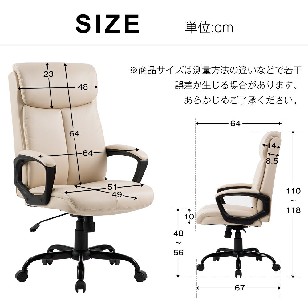 社長椅子 オフィスチェア レザー ハイバッグ パソコンチェア クッション ハイバック 椅子 ワークチェア デスクチェア PCチェア ホワイト